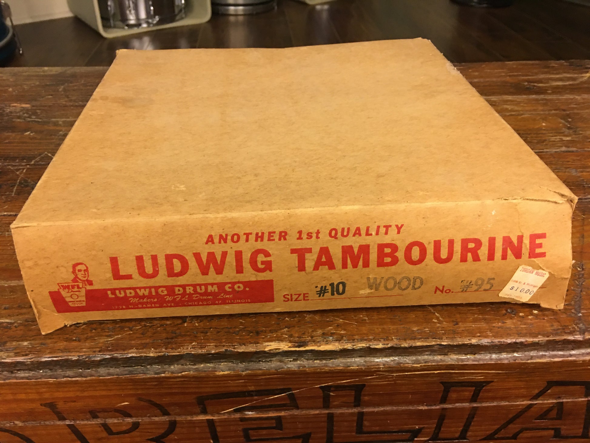 What an amazing time capsule find! A 1950s Ludwig by WFL 10" Tambourine, unplayed, new in the original box with the original price sticker! Beautiful example, and perfect for the Ludwig collector who thought they had it all! Enjoy!
