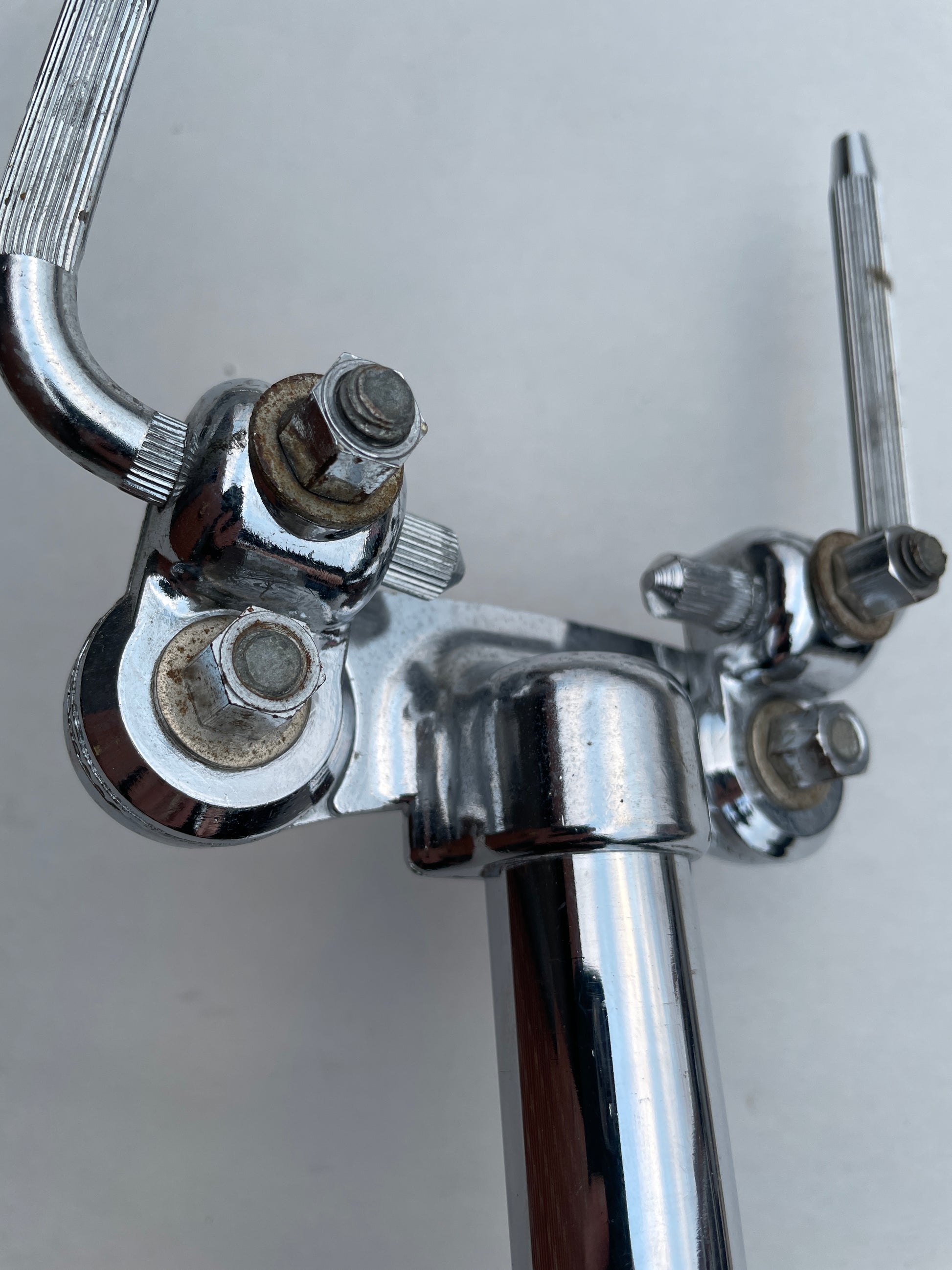 For your kind consideration is this vintage Ludwig No. 781-2 long double tom holder. It's in minty clean condition with minimal play wear and aging to the chrome. Perfect for mounting your 70s Ludwig toms. Enjoy!
