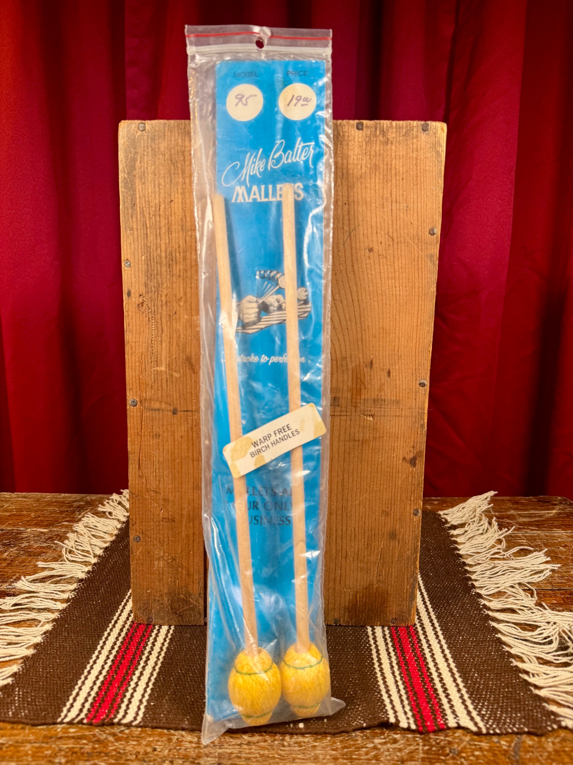 For your kind consideration is this N.O.S. set of vintage of Mike Balter no95 legato mallets. These are still in the original packaging and are unplayed. The mallets are from before Vic Firth acquired Mike Balter's mallet production in 2018, which makes vintage mallets like these a rarity. Enjoy!