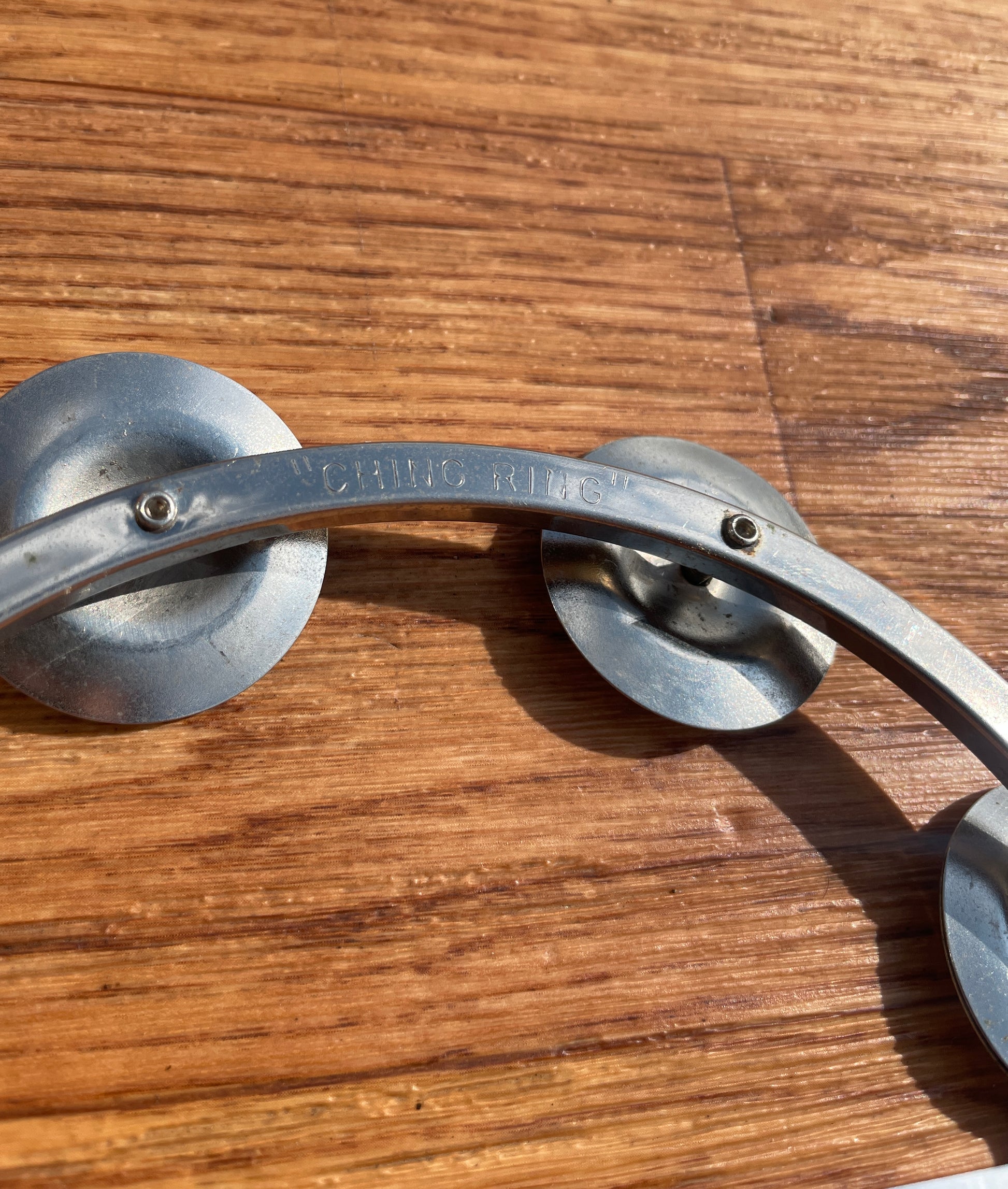For your kind consideration is this vintage Ching Ring made by Ralph Kester. This is an original and not a reproduction. It's in great condition with all zills in place, slight bend to the frame. Made famous by John Bonham. Enjoy!