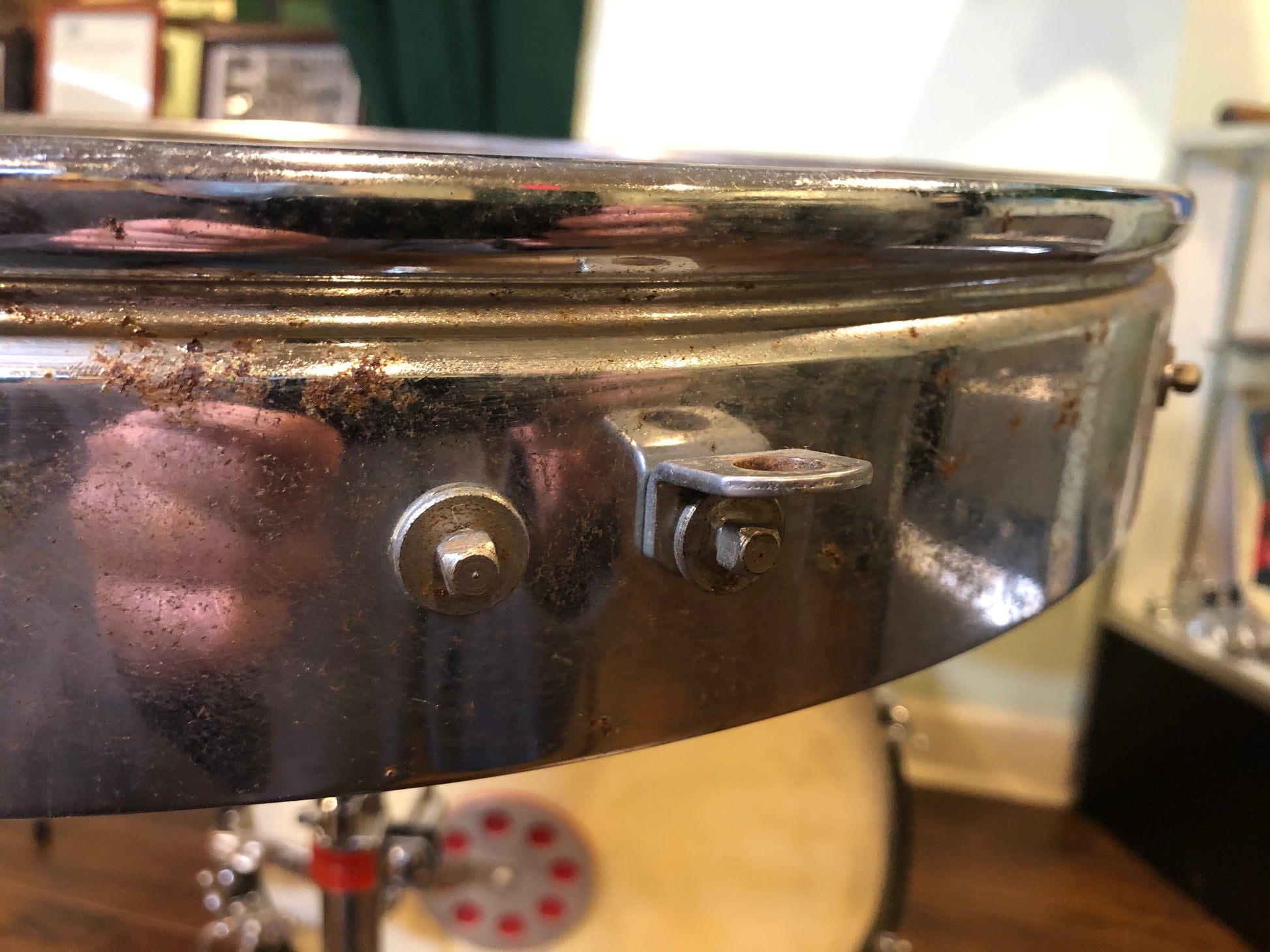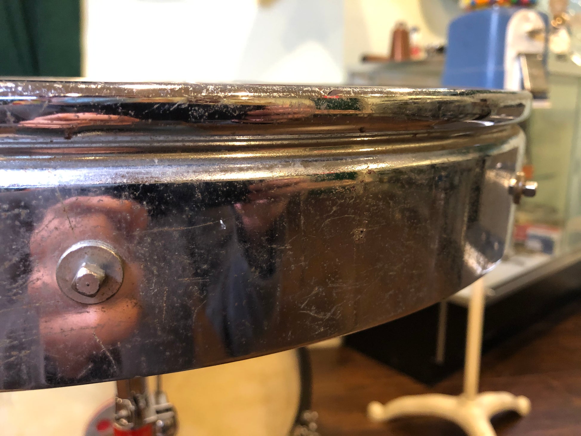 For your viewing pleasure we have a vintage Ralph Kester Flat Jacks Tenor drum. Although there is some wear and pitting on the shell, this drum functions as it should. A unique drum that was made for marching bands. This tenor drum has the two clips for the Hi-Stepper marching harness. Enjoy!
