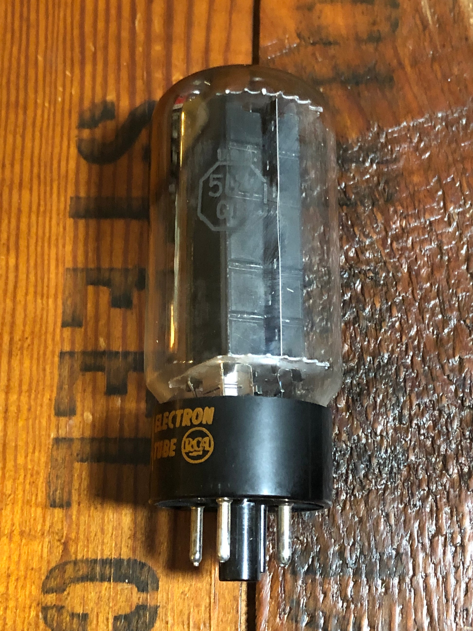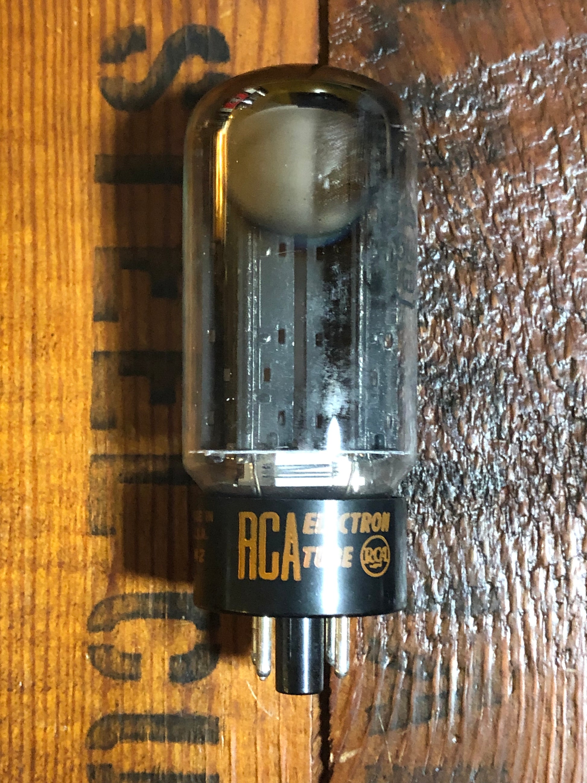 For your kind consideration is this vintage RCA 5U4GB rectifier tube made in the USA. It has black plates, strong ink, and the pins are in good condition. The tube is in great condition, passes gas and leakage tests, and reads strong.