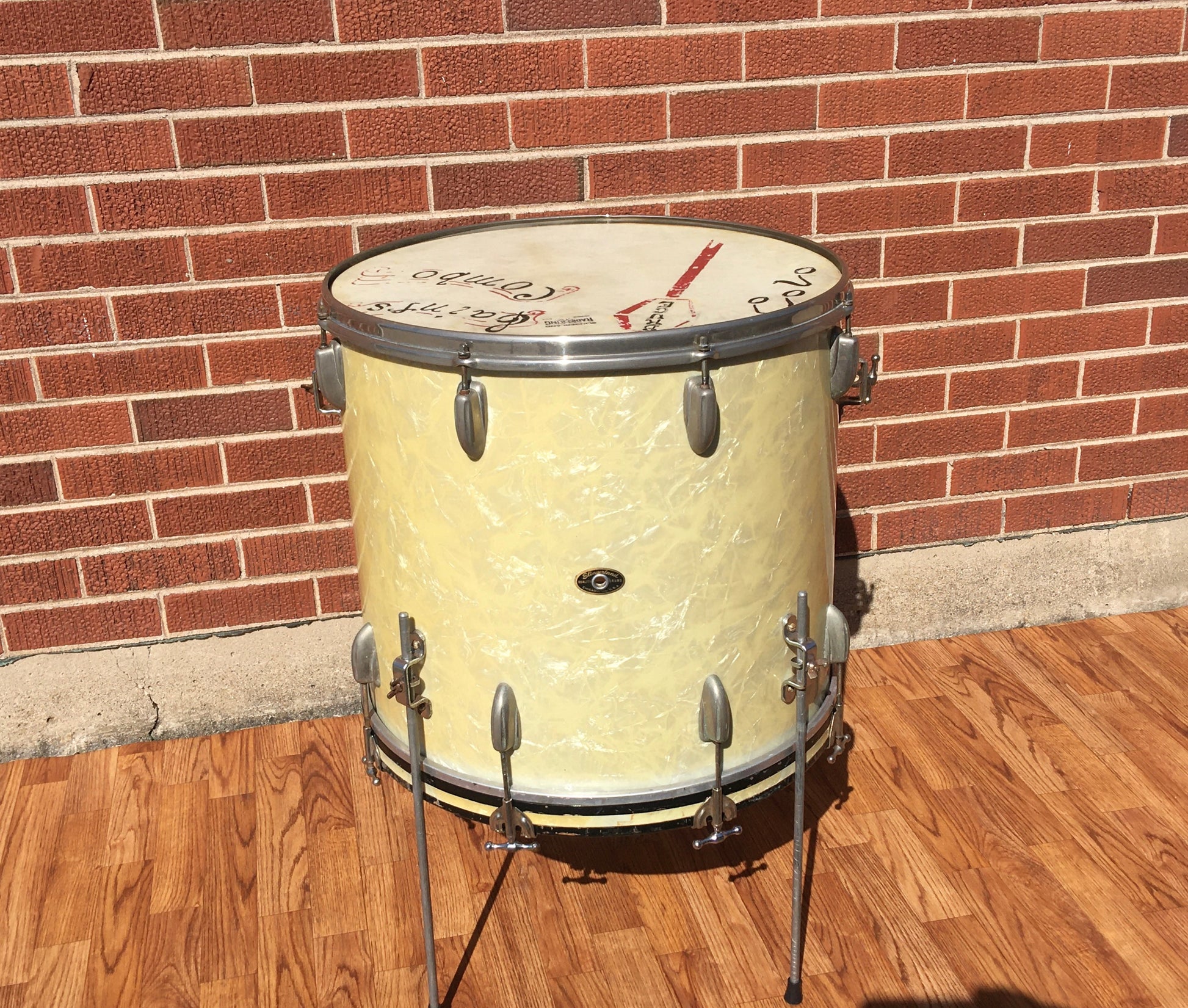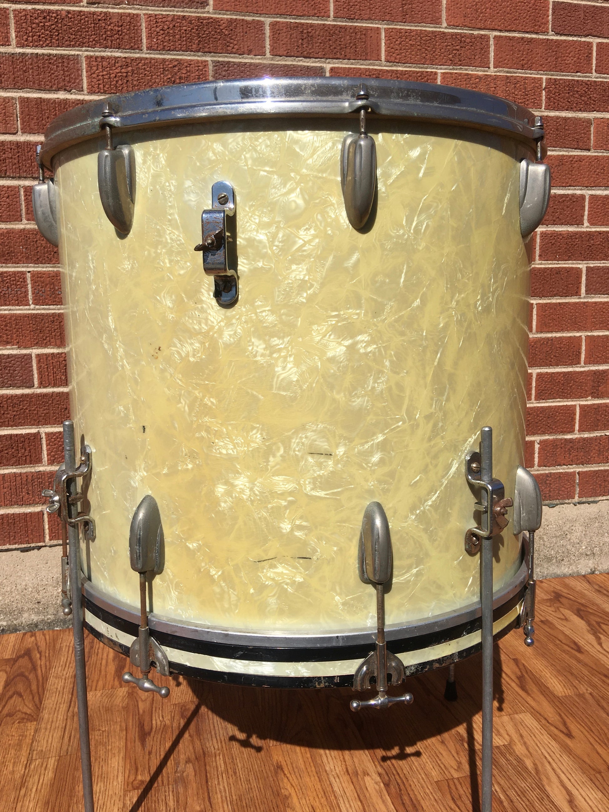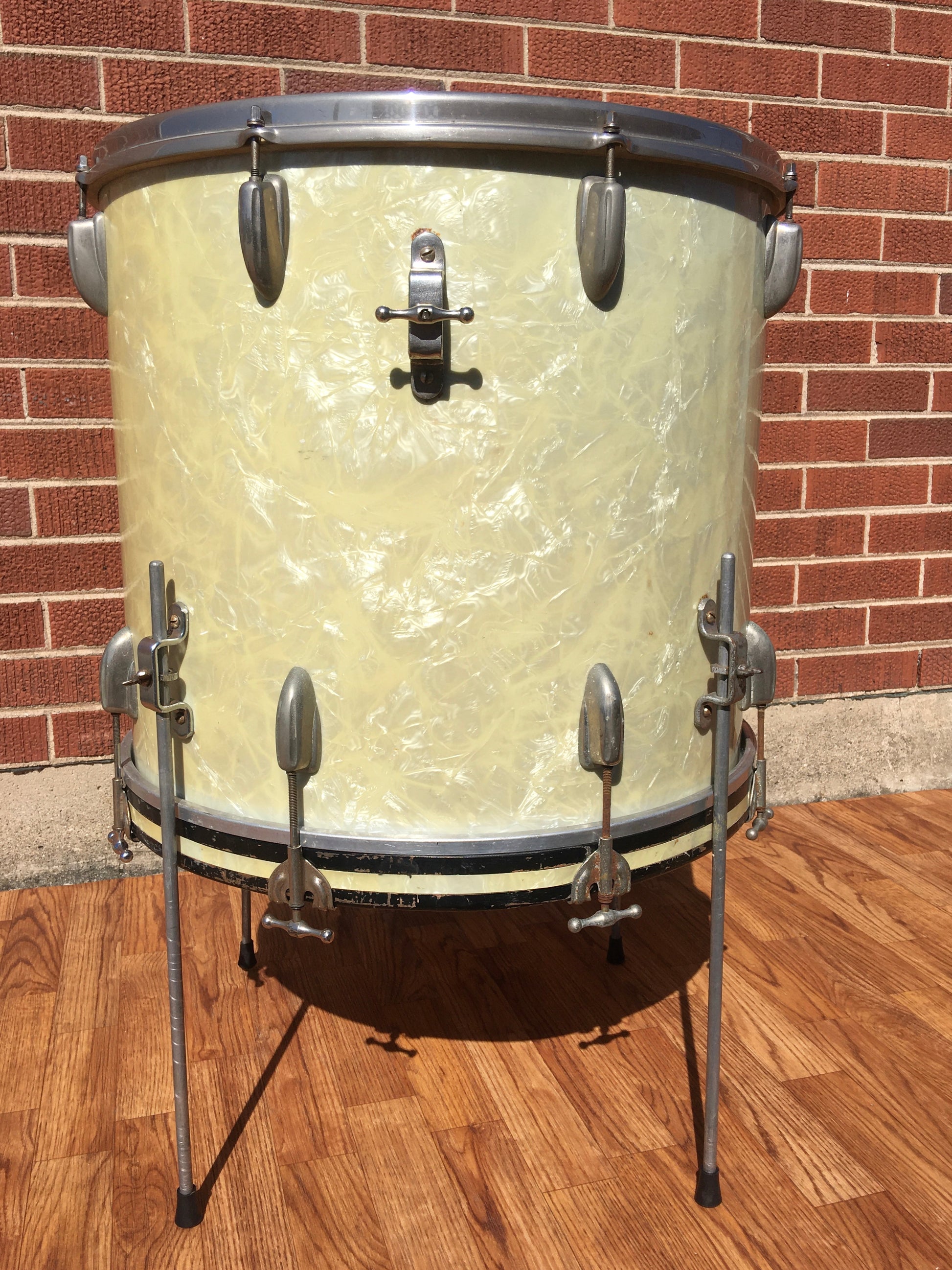 1956-59 Slingerland Radio King 18x20 Combo-Be Bop Bass / Floor Tom White Marine