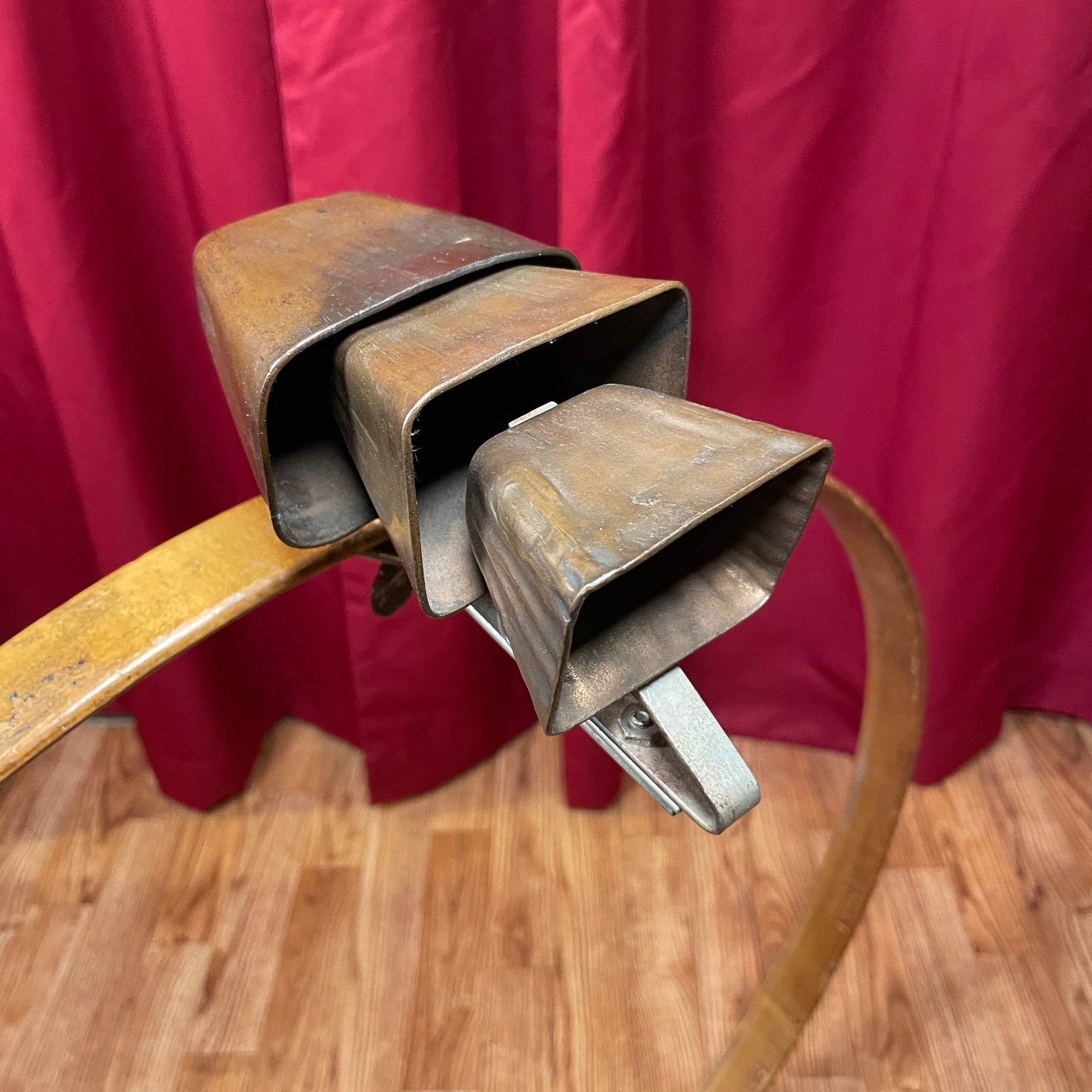 Vintage 1920s Set of 3 Tuned Cow Bells Ludwig Leedy Tri-Bell Trap Set