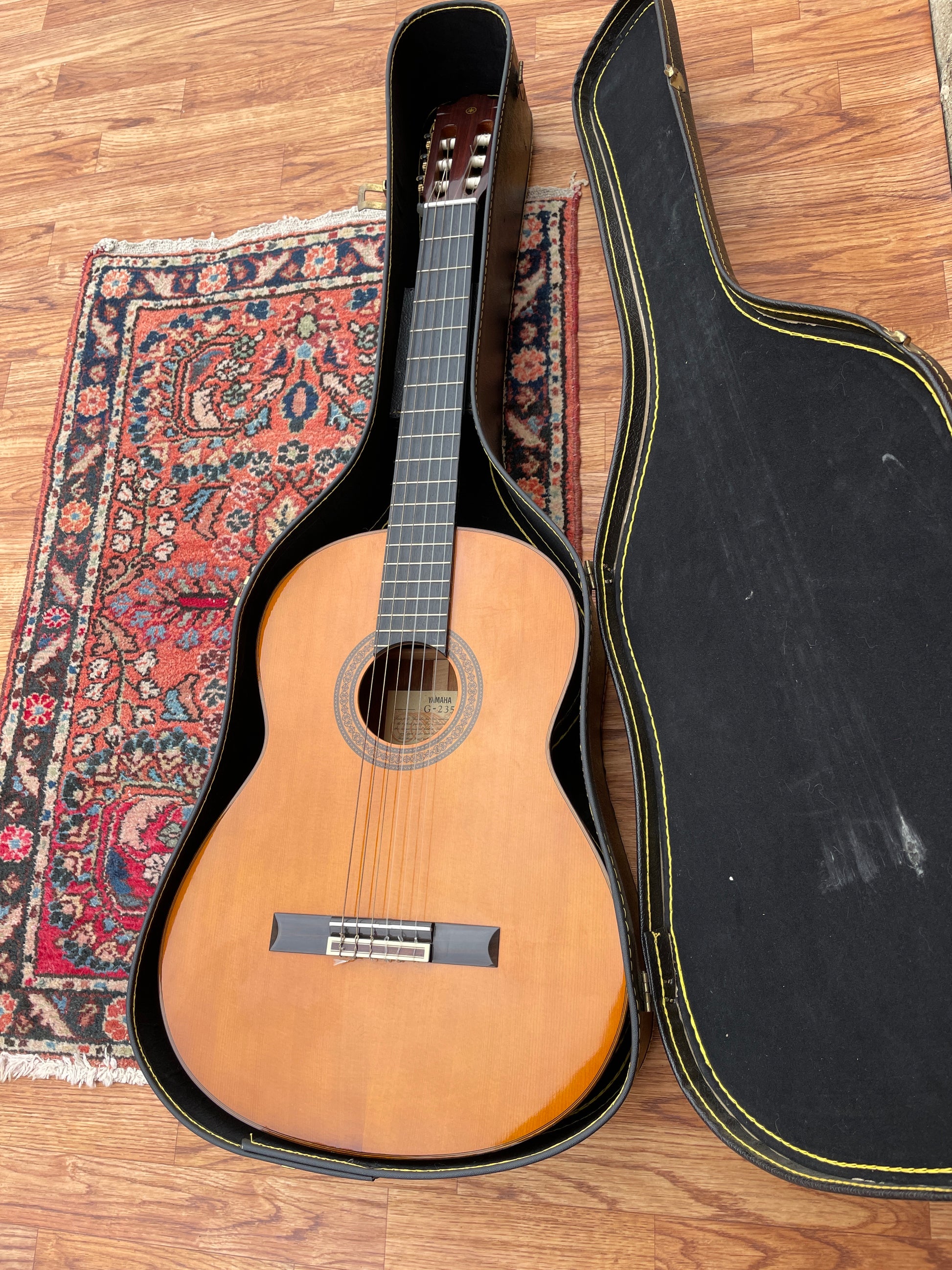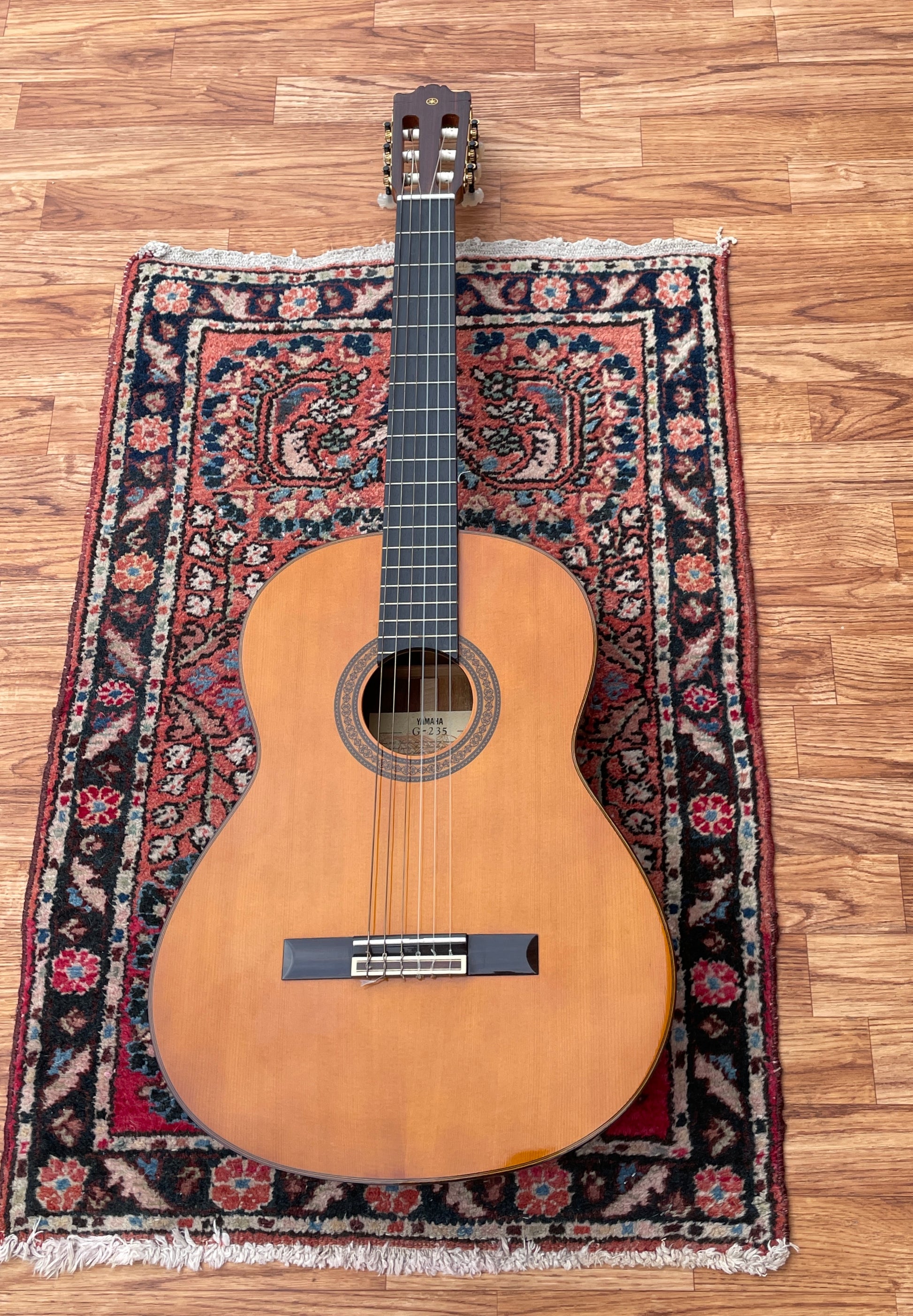 For your kind consideration is this Yamaha G235 classical acoustic guitar in natural. It's in beautiful condition, is easy to play, and sounds great. Vintage guitar made in the 1980s. Comes with a chipboard case. Enjoy!
